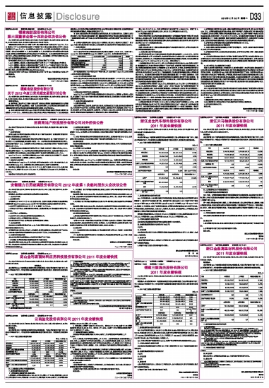 浙江龙生汽车部件股份有限公司2011年度业绩快报