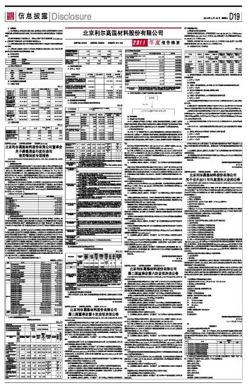 北京利尔高温材料股份有限公司2011年度报告摘要