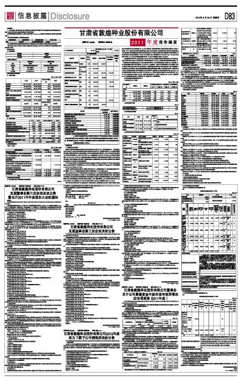 ② 酒泉敦煌种业棉蛋白油脂有限公司2011年净利润为-71,961,537.27元,母公司来源于该公司的净利润为-71,162,764.21元;2010年净利润为1,044,790.28元,母公司来源于该公司的净利润为1,044,790.28元;主要系全国油脂产品价格持续下滑,造成公司油脂产品成本倒挂,出现较大幅度亏损,加之棉油期货累计投资净收益-3,612.72 万元加剧了亏损幅度。