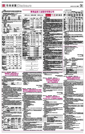 青海盐湖工业股份有限公司2011年度报告摘要