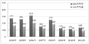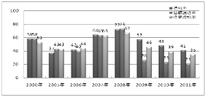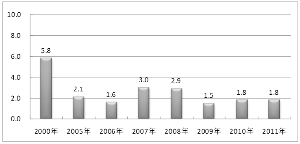 5. 结论 市场质量是衡量证券市场核心竞争力和服务国民经济能力的综合指标,本报告重点分析证券化资本的综合贡献和二级市场的定价效率,包括证券化资本综合贡献率、证券交易所市场质量指数、流动性、波动性、订单执行质量等指标。 从整体规模看,沪市证券化资本对国民经济的贡献仍偏低,但其产出效率较高。2010年沪市证券化资本形成率仅为6.9%,证券化资本综合贡献率为19.8%;但证券化资本产出率为66.7%,为全社会水平的2.9倍,证券化资本效率系数为全社会水平的2.5倍。 近几年来,沪市证券交易市场质量处于较好水平,衡量流动性和波动性的市场质量指数2011年达到343,是2000年的3.4倍,是2008年的2倍。2011年市场流动性略有下降,其中,买卖价差类指标与2010年基本持平,价格冲击成本比2010年提高了2个基点,流动性指数比2010年有所下降。2011年沪市波动性水平出现较大程度改善,日内波动率、超额波动率及收益波动率均有所下降,分别较2010年下降了14.6%、8.7%、10.3%。 在订单执行质量方面,2011年订单每笔平均申报金额较去年有显著提高,其余指标均与过去两年基本持平。 (注:本文为《上证所市场质量报告(2012)》摘要本,报告全文可从上海证券交易所网站www.sse.com.cn下载。) 本版导读: