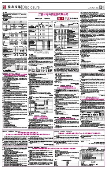 江苏长电科技股份有限公司公告(系列) 2012-04-20 来源:证券时报网 作者:
