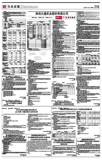 | 深圳大通实业股份有限公司2011年度报告摘要 | 2012-04-20 |