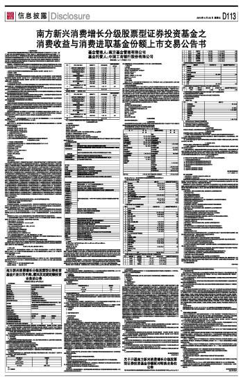 中国证监会、深圳证券交易所对南方新兴消费增长分级股票型证券投资基金之消费收益与消费进取基金份额上市交易及有关事项的意见,均不表明对本基金的任何保证。凡本公告未涉及的有关内容,请投资者详细查阅刊登在《证券时报》及南方基金管理有限公司网站(www.nffund.com)上公告的《南方新兴消费增长分级股票型证券投资基金招募说明书》。