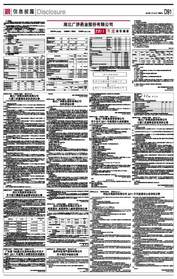 湖北广济药业股份有限公司2011年度报告摘要 2012-04-20 来源:证券时报网 作者: