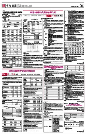 深圳市惠程电气股份有限公司2012第一季度报告 2012-04-20 来源:证券时报网 作者: