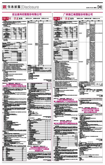 宏达高科控股股份有限公司2012第一季度报告 2012-04-20 来源:证券时报网 作者: