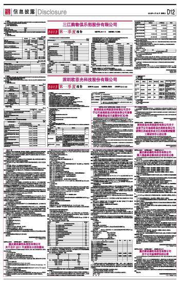三江购物俱乐部股份有限公司2012第一季度报告 2012-04-20 来源:证券时报网 作者:
