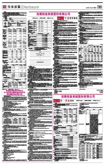 拓维信息系统股份有限公司2011年度报告摘要 2012-04-20 来源:证券时报网 作者: