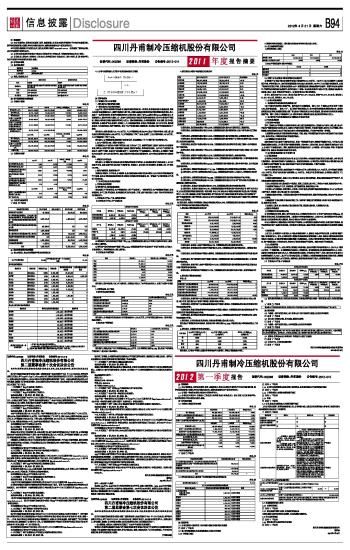 四川丹甫制冷压缩机股份有限公司公告(系列) 2012-04-21 来源:证券时报网 作者: