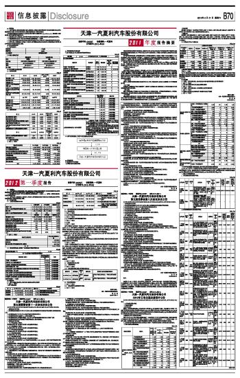 天津一汽夏利汽车股份有限公司2012第一季度报告 2012-04-21 来源:证券时报网 作者: