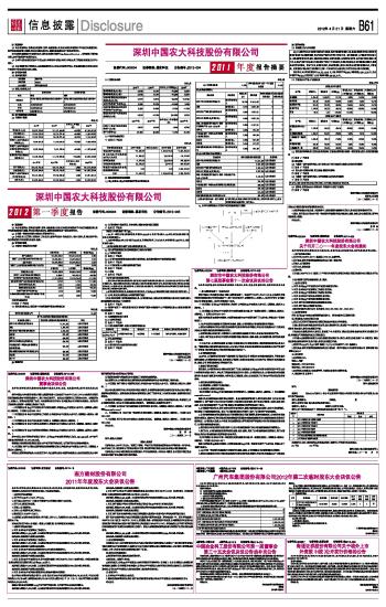 深圳中国农大科技股份有限公司2012第一季度报告 2012-04-21 来源:证券时报网 作者: