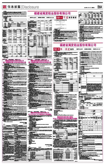 福建省闽发铝业股份有限公司2011年度报告摘要 2012-04-21 来源:证券时报网 作者: