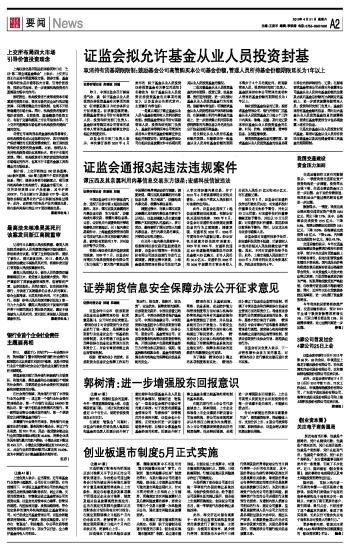 证监会拟允许基金从业人员投资封基取消持有货基期限限制;鼓励基金公司高管购买本公司基金份额,管理人员所持基金份额期限延长为1年以上 2012-04-21 来源:证券时报网 作者:郑晓波 刘璐
