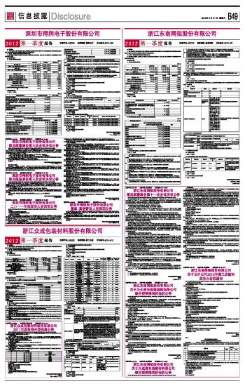 证券代码:002055 证券简称:得润电子 公告编号:2012-024 深圳市得润电子股份有限公司2012第一季度报告 2012-04-21 来源:证券时报网 作者: