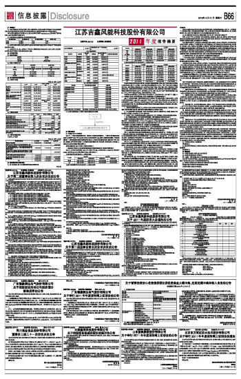 江苏吉鑫风能科技股份有限公司2011年度报告摘要