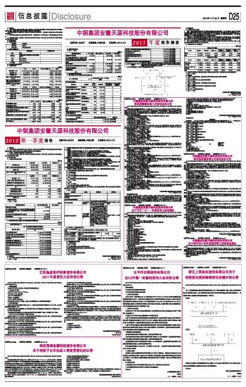 中钢集团安徽天源科技股份有限公司公告(系列) 2012-04-26 来源:证券时报网 作者: