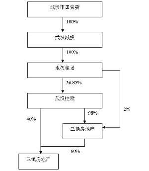 (上接B13版) ■ 七、与本公司的关联关系及其向本公司推荐董事及高级管理人员情况 截至本报告书出具日,水务集团持有武汉控股56.85%的股份,为武汉控股的控股股东。水务集团向武汉控股推荐董事情况如下: ■ 八、交易对方及其主要管理人员最近五年内受行政和刑事处罚、涉及诉讼或仲裁情况 交易对方水务集团及其主要管理人员最近五年内未受过行政处罚(与证券市场明显无关的除外)、刑事处罚、或者涉及与经济纠纷有关的重大民事诉讼或者仲裁。 第四节 交易标的情况 一、置入资产的情况 本次交易拟置入资产为排水公司100%股权,其具体情况如下: (一)排水公司基本情况 ■ (二)排水公司历史沿革及产权控制关系 1、公司设立 1995年9月,武汉市排水泵站管理处以实物出资600万元、武汉市市政设施有偿使用管理处以货币出资150万元、武汉市水质净化厂以货币出资50万元,设立排水公司,注册资本为800万元,排水公司设立时股权结构如下: 单位:万元 ■ 2、1997年增资 1997年5月10日,排水公司召开股东会会议,审议批准武汉市市政工程设计研究院以现金方式向排水公司增资30万元,排水公司注册资本增加至830万元。上述出资已经湖北大信会计师事务所1997年11月19日鄂信业字(1997)第592号《验资报告》予以审验。本次增资后,排水公司股权结构如下: 单位:万元 ■ 3、2000年股权转让及增资 根据《市人民政府关于武汉市城市排水发展有限公司机构优化问题的批复》(武政[1999]6号文)及《市国资办关于市政建设管理局<重新组建武汉市城市排水发展有限责任公司>的批复》(武国资事[1999]82号文),武汉市市政建设管理局分别与武汉市排水泵站管理处、武汉市市政设施有偿使用管理处、武汉市水质净化厂、武汉市市政工程设计研究院签署了股权转让协议,受让其各自持有的排水公司股权。同时武汉市市政建设管理局以实物资产增资3,204.20万元,以无形资产(土地使用权)增资811.99万元,共计4,016.19万元。本次变更后,武汉市市政建设管理局持有排水公司100%股权,排水公司注册资本增加至4,846.19万元。本次增资已经湖北大信有限责任会计师事务所鄂信业字(1999)第232号《验资报告》审验。本次股权转让及增资后,排水公司股权结构如下: 单位:万元 ■ 4、2003年股权划转 根据2003年1月武汉市国资委《关于武汉市三镇基建发展有限责任公司等单位出资人有关情况说明的函》(武国资函[2003]2号文),排水公司划入武汉市城市建设投资开发总公司(武汉城投前身)。此次变更后,公司股东为武汉市城市建设投资开发总公司,持有排水公司100%股权。 根据《市委办公厅、市政府办公厅印发〈关于重组城建资产壮大市城市建设投资开发总公司实施方案〉的通知》(武办发[2002]15号文),2003年由武汉城市建设投资开发总公司重组城建资产。同年1月,武汉市城市建设投资开发总公司设立了以三镇基建公司作为核心企业的水务集团,并将排水公司划入水务集团。此后排水公司的实际运营、管理均归水务集团。上述股权划转后,排水公司股权结构如下: 单位:万元 ■ 5、排水公司产权控制关系如下: ■ (三)本次交易涉及股权转移的情况 截至本报告出具日,排水公司股权权属清晰,不存在抵押、质押或者其他权利限制的情况,亦无诉讼、仲裁等重大法律纠纷情形。本次排水公司100%股权转让交易无法律障碍。 (四)主要资产的权属、对外担保情况及主要负债情况 1、主要资产情况 截至2012年3月31日排水公司经审计的主要资产帐面价值如下: 单位:万元 ■ 截至2012年3月31日,排水公司总资产为422,574.24万元,其中:流动资产74,855.03万元,非流动资产347,719.20万元。非流动资产中,固定资产279,618.88万元,在建工程29,283.91万元,无形资产34,931.46万元。 (1)固定资产 截至2012年3月31日,排水公司房屋建筑物、生产经营性主要设备等固定资产情况如下: 单位:万元 ■ (2)房产情况 排水公司已取得房屋所有权证书的房屋建筑物共计153宗,面积74,499.29平方米,其详细情况如下: ■ ■ 截至本报告书出具日,排水公司尚有13处房产未取得房屋所有权证,其中11处房产由于无相应的土地使用权证而未能办理房屋所有权证;2处房产由于安全鉴定不合格而未能办理房屋所有权证。上述存在瑕疵的房产面积合计为3,482.21平米,占排水公司房产总面积的比例为4.47%,对排水公司生产经营不构成重大影响。 (3)无形资产情况 截至2012年3月31日,排水公司无形资产净值为34,931.46万元,均为土地使用权。排水公司共拥有土地43宗,总面积为2,063.01亩。其中33宗土地已取得国有土地使用证,面积合计为2011.63亩,具体情况如下: ■ 注:上表第32及第33宗土地使用权类型为划拨,因规划变更暂未办理土地出让手续。 上述33宗土地不存在设定抵押权、质押权或任何其他第三方权益的情形,不存在司法查封、冻结或其他权利受到限制的情形,亦不存在任何权属争议、纠纷或诉讼的情形。 排水公司尚有正在使用但未取得土地使用权证具体情况如下: ■ ■ 上述10宗未取得《国有土地使用证》的土地具体情况如下: 1)正在办理《国有土地使用证》的土地 排水公司目前正在办理上述第1-5宗土地的《国有土地使用证》,其中: 喻家湖泵站用地,《建设项目选址意见书》及《建设用地规划许可证》中记载的用地申请人为水务集团,目前先由水务集团办理相关土地征地手续,待水务集团取得《国