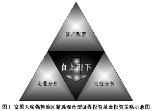 (上接D14版) 六、基金的投资目标 本基金遵循“风险调整后收益最大化”原则,通过“自上而下”的积极投资策略,在合理运用金融工程技术的基础上,动态调整投资组合比例,注重基金资产安全,谋求基金资产的长期稳定增值。 七、基金的投资方向 本基金投资范围为具有良好流动性的金融工具,包括国内依法公开发行、上市的股票、债券以及中国证监会允许基金投资的其它金融工具。其中股票投资主要投资于强势地区(区域经济发展较快、已经形成一定产群规模且居民购买力较强)具有较强竞争力、经营管理稳健、诚信、业绩优良的上市公司的股票。投资债券包括国债、金融债、企业(公司)债(包括可转债)等。 八、基金的投资策略 本基金主要采用“自上而下”的主动投资管理策略,在充分研判宏观经济状况、资本市场运行特征的前提下,以强势地区内单个证券的投资价值评判为核心,追求投资组合流动性、赢利性、安全性的中长期有效结合。 ■ ●资产配置: (1)在正常市场状况下,本基金投资组合中的股票投资比例浮动范围为:45%-95%;债券和短期金融工具的投资比例浮动范围为:5%-55%,其中现金或者到期日在一年以内的政府债券的比例不低于5%。投资于强势地区的股票比例不低于基金股票投资的80%。 (2)股票与债券之间具体的比例将根据不同的市场情况动态配置,以最大限度地规避风险。 本基金管理人认为,股票市场运行的中枢取决上市公司的整体盈利能力,外部环境(政策、投资理念及投资者行为等)变化决定了市场的运行区间,股票供求、资金面的松紧程度等左右市场的短期波动;债券市场的运行中枢主要取决于市场利率,利率的预期变化决定了债券市场总体变化趋势,债券供求状况和资金松紧程度等左右债券市场的短期波动。本基金管理人将在基本分析的基础上,综合应用数量分析与技术分析等工具,研判市场的中期波动与长期趋势。 ①当股票市场处于低风险区域或预期股票市场趋于上涨时,本基金管理人将采取适度积极的做法,提高股票的投资比重,分享股票市场上涨带来的收益,以争取较高回报。 ②当股票市场处于高风险区域或预期股票市场趋于下跌时,本基金管理人将采取保守的做法,降低股票投资比例,加大债券市场的投资力度,以回避股票市场下跌的系统性风险,避免组合损失。 ③当股票市场在中等风险区域或预期处于震荡运行时,本基金管理人将以结构性调整为主,适当降低股票的投资比重,选择的重点是相对价值低估的个股,同时加大可转债的投资比重。 ④当预期利率下降、债券价格将上升时,组合将降低现金持有比例,并将债券资产主要投资于中长期债券,以实现较高的回报;在预期利率上升、债券价格将下降时,组合将增加现金持有比例,并将债券资产主要投资于短期债券和浮息债券。 ⑤积极参与风险低且可控的新股申购、债券回购等投资。 ●股票投资策略: 本基金管理人借鉴外方股东加拿大蒙特利尔银行金融集团(BMO Financial Group)的投资管理经验及技能,根据国内市场的特征,应用“富国3S股票滤网系统(Stock Screening System)”,挖掘具有投资价值的股票: (1)富国3S股票滤网系统的操作思路为: ■基于富国的“多因素综合价值评估模块(MVP)”,对上市公司的管理能力、财务实力、资金运用效率、资产盈利能力、成长性、经营中的现金流量状况以及股价吸引力进行总体评价; 剔除财务指标异常和股价波动异常的个股,构建备选股票库I; ■在公司研究员和基金经理实地跟踪的基础上,结合市场趋势判断,形成重点关注股票库II; ■对股票库II进行限制性、流动性和组合风险度检验,并根据资产配置原则和市场风险分析,构建投资组合。 ■ 公司备选股票库I每季度微调一次,对于被剔除的股票,基金经理将在最近的一个月内作出相应的减持或卖出操作;对于被新调入的股票,基金经理将基于主客观判断进行决策;对于入选重点股票库II的,将选择适当时机进行投资操作。 (2)富国“多因素综合价值评估模块(MVP)”: “多因素综合价值评估模块(Multifactor Valuation Pipeline)”是富国3S股票滤网系统中的核心部分之一。本基金管理人基于“定性定量分析相结合、动态静态指标相结合”的原则,运用“价值为本,成长为重”的合理价格成长投资策略(GARP-Growth At Reasonable Price)来确定具体选股标准,评估上市公司的综合素质,研判股票的投资价值。重点关注的因素包括: ■企业的管理团队优秀,管理制度健全,内部治理结构完善,重视股东利益,关注投资回报,具有良好的诚信度; ■企业在产品开发、技术进步、成本控制等方面具有较强的核心竞争力,并且在销售网络、市场知名度和品牌效应方面具有独特优势; ■企业行业地位突出,财务管理稳健,营运状况良好,具有稳定的现金流并具备一定的规模优势和较好的抗风险能力; ■企业盈利能力较强,主营业务收入、主营业务利润、息税前收益以及净资产报酬率稳定并保持较高的成长性; ■股票具有较好的流动性,适合资金的操作; ■市净率(P/B)、动态市盈率(PEG)以及股票市值/主营业务销售收入/主营业务收入增长率(P/S/G)相对较低; ■综合股价/每股经营现金流指标(P/C)、股价/每股销售收入指标(P/S)、股利分配率(DPR)以及自由现金流折现模型(DCF)、经济价值模型(EV/EBITDA)、杜邦财务分析模型(DuPont Analysis)的分析结果。 ●债券投资策略: