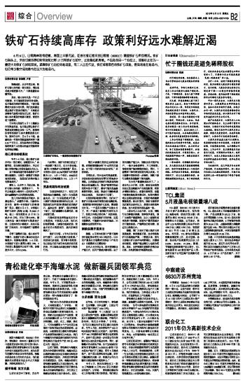 青松建化牵手海螺水泥 做新疆兵团领军典范 2012-06-08 来源:证券时报网 作者:宋雨