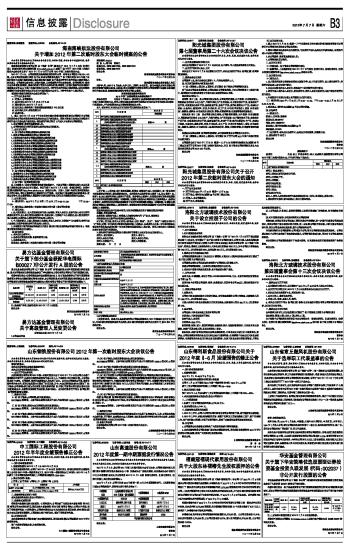 特此公告。 山东高速份有限公司 董事会 2012年7月7日 本版导读:
