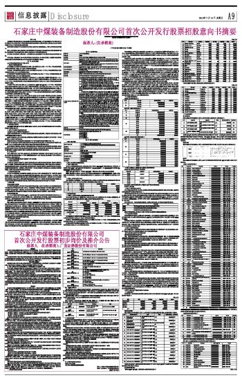 石家庄中煤装备制造股份有限公司首次公开发行股票招股意向书摘要
