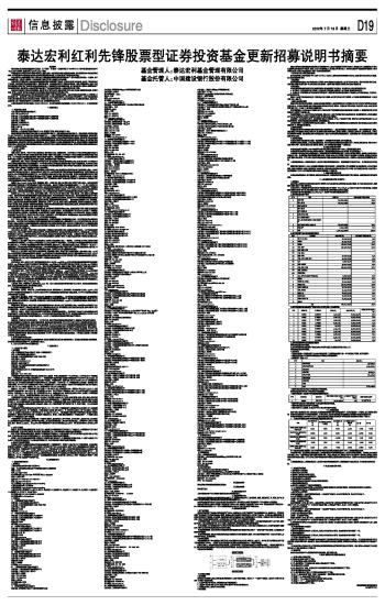 泰达宏利红利先锋股票型证券投资基金更新招募说明书摘要