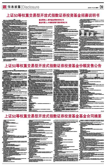 上证50等权重交易型开放式指数证券投资基金份额发售公告 2012-07-19 来源:证券时报网 作者: