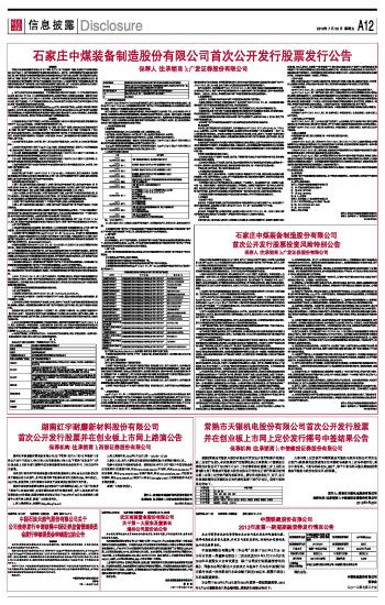 石家庄中煤装备制造股份有限公司首次公开发行股票发行公告