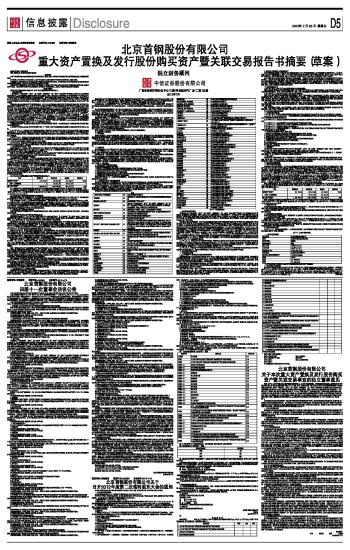 北京首钢股份有限公司重大资产置换及发行股份购买资产暨关联交易报告书摘要(草案)