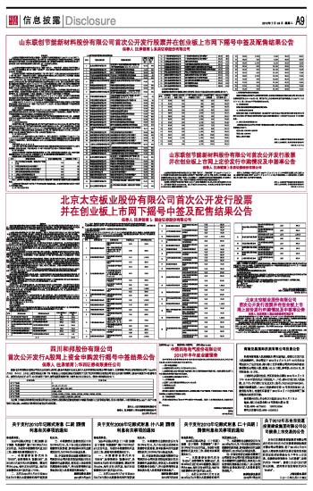 - 北京太空板业股份有限公司首次公开发行股票并在创业板上市网下摇号中签及配售结果公告