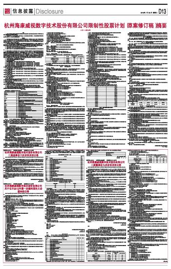 杭州海康威视数字技术股份有限公司限制性股票计划(草案修订稿)摘要