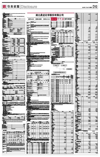证券代码:300054 证券简称:鼎龙股份 公告编号:2012-022 湖北鼎龙化学股份有限公司2012半年度报告摘要 2012-07-26 来源:证券时报网 作者: