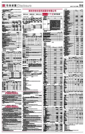 深圳市特尔佳科技股份有限公司2012半年度报告摘要