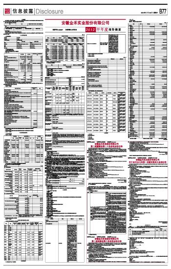 安徽金禾实业股份有限公司2012半年度报告摘要