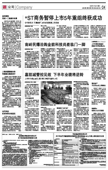南岭民爆洽购金能科技尚差临门一脚 2012-07-30 来源:证券时报网 作者:张珈