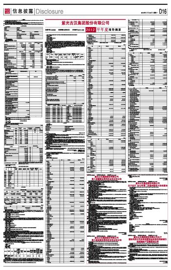 紫光古汉集团股份有限公司2012半年度报告摘要