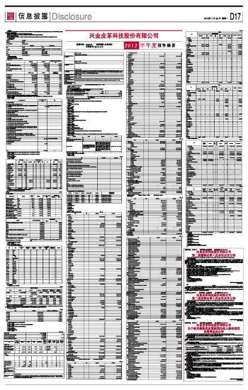 兴业皮革科技股份有限公司2012半年度报告摘要