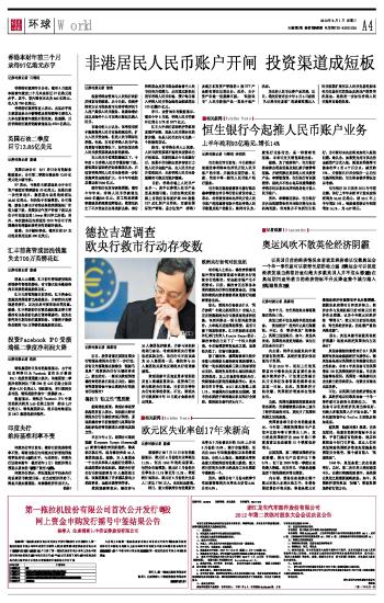 | 恒生银行今起推人民币账户业务 | 2012-08-01 | |