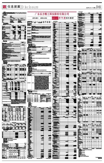 广东东方精工科技股份有限公司2012半年度报告摘要