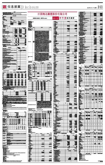 江阴海达橡塑股份有限公司2012半年度报告摘要