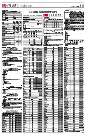 江苏炎黄在线物流股份有限公司2012半年度报告摘要 2012-08-04 来源:证券时报网 作者: