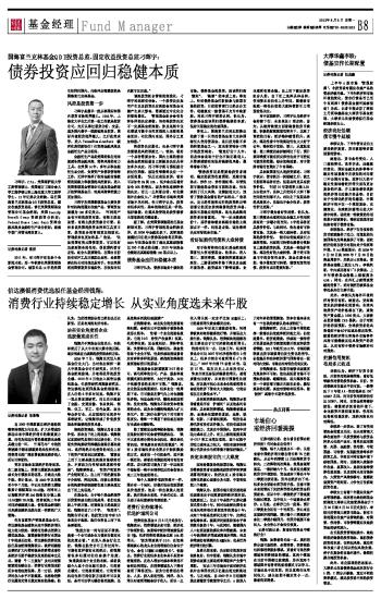 证券时报记者:怎么看目前国内经济形势?何时会走出低谷? 钱翔:每个人的观点不一样,长期来看中国经济增长潜在增长率7%已经确认。从去年四季度12月份降准货币转向,三次降准两次降息,效果会逐渐显现,一般持续六个月,很多实业感受到货币环境放松,资金成本下降在今年二季度比较明显。另外在经济向下时,很多企业采取去库存的手段,在看不清未来的情况下先把库存消化掉把资金回笼起来。所以今年二季度经济下滑速度快超过预期,当中很大一个因素是去库存。6月底,去库存已告一段落,预计三季度企业还有一个补库存,信心来自宏观经济的回暖。预计整个三季度经济会比二季度小幅回升,但回升幅度不会很大,企业信心不会很快恢复。 证券时报记者:您看好消费品中哪些行业? 钱翔:如果看得长远一点,我把消费分成可选消费、必需消费、消费辅助包括像消费服务领域,更看好可选消费领域和消费辅助的领域,这两个领域在目前中国都比较薄弱,另外这两个领域国外有清晰的盈利模式可以学习。市场还处于迸发期,所以这些行业空间很大,成长初期不确定性小一点,能看得更清楚。 本版导读: