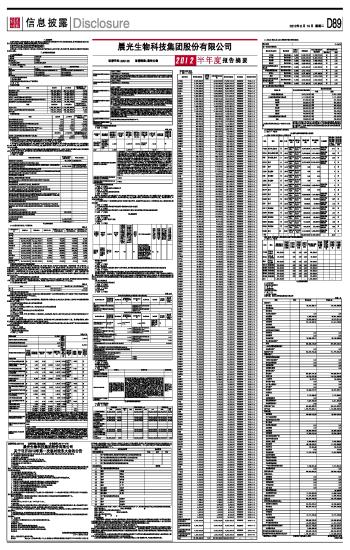 晨光生物科技集团股份有限公司2012半年度报告摘要 2012-08-14 来源:证券时报网 作者: