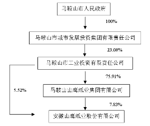 四、发行人控股股东及实际控制人基本情况 (一)控股股东情况 山鹰集团为安徽山鹰纸业股份有限公司的控股股东。截至2011年末,公司无持股在百分之十以上的股东;山鹰集团为公司第一大股东,持股比例为7.83%;工投公司为公司第二大股东,持股比例为5.52%。山鹰集团是工投公司的控股子公司,工投公司持有山鹰集团75.91%的出资额。 控股股东名称:马鞍山山鹰纸业集团有限公司 企业性质:国有控股企业 法定代表人:周著青 成立日期:1997年8月1日 注册资本:23,000万元 注册地址:安徽省马鞍山市勤俭路3号 营业执照注册号:340500000025318 山鹰集团公司的经营范围为持有、管理并运作公司的各项资产,科研开发,能源开发,物业管理,后勤服务,贸易,本企业产品、技术出口及本企业所需技术、设备、原辅材料进口。其目前的职能为持有本公司国有股股权,经营其拥有的土地使用权,管理非生产经营性资产及相关事务,不开展其它生产经营活动。 山鹰集团现有权益投资为持有的安徽山鹰纸业股份有限公司股份和持有的马鞍山山鹰置业有限公司股份,无其他权益投资。 截至2011年末,山鹰集团总资产722,749.99万元,总负债403,381.96万元,所有者权益319,368.03万元,实现营业收入427,523.76万元,净利润9,070.24万元。 (二)实际控制人情况 截至2011年12月31日,公司实际控制人是马鞍山市人民政府,控股股东是马鞍山山鹰纸业集团有限公司。 马鞍山山鹰纸业集团有限公司为公司第一大股东,持股比例为7.83%;马鞍山市工业投资有限责任公司为公司第二大股东,持股比例为5.52%。马鞍山山鹰纸业集团有限公司是马鞍山市工业投资有限责任公司的控股子公司。 山鹰集团公司的控股股东为马鞍山市工业投资有限责任公司。截至2011年12月31日,工投公司持有山鹰集团75.91%的出资额。基本情况如下: 公司名称:马鞍山市工业投资有限责任公司 企业性质:国有控股企业 法定代表人:刘宇辉 成立日期:2002年2月27日 注册资本:13亿元 注册地址:安徽省马鞍山市雨山区雨山西路658号 营业执照注册号:340500000036753 经营范围:市国资委授权范围内的国有资产经营管理,国有资产产(股)权交易,证券交易,融资与投资,资产租赁、拍卖与收购、信息咨询、代理等中介服务,担保。(国家法律法规禁止的除外) 山鹰集团公司原为马鞍山市人民政府授权经营的国有独资公司。2004年12月,经马政秘[2004]61号文《马鞍山市人民政府关于同意马鞍山山鹰纸业集团有限公司改制方案的批复》批准,山鹰集团公司进行了改制,改制后的山鹰集团公司注册资本为23,000万元,其中马鞍山市国有资产管理办公室持有20,000万元,占注册资本的86.96%,马鞍山市山鹰创业投资有限公司持有3,000万元,占注册资本的13.04%。 2006年5月,本公司完成了股权分置改革,股改后山鹰集团公司在本公司的权益减少16,693.37万元,根据马鞍山市国有资产监督管理委员会办公室《关于调整山鹰集团注册资本出资比例的批复》(马资办[2006]10号文),同意自2006年1月1日起,山鹰集团公司的注册资本比例由原市国资办占86.96%,创投公司占13.04%,调整为市国资办占75.91%,创投公司占24.09%。同年,根据《马鞍山市人民政府关于调整市建委相关机构和职能,完善市国有资产运营公司管理体制的意见》(马政[2006]61号文)和《马鞍山市人民政府关于授权市建设投资有限责任公司等3家公司国有资产经营范围的批复》(马政秘[2007]9号文)的规定,市国资办持有的山鹰集团75.91%的股权被行政划转至工投公司经营管理。山鹰集团公司于2007年4月26日办理了工商变更登记手续。 2009年7月1日,中国建设银行股份有限公司安徽省分行(以下简称“建行安徽省分行”)作为资金信托委托人及产品管理人发起利得盈基础设施建设型(定)09年第3期非保本浮动收益型理财产品(产品编号:AH090717003M3600127),发售规模为10亿元人民币,投资日期为2009年7月17日至2012年7月16日。建行安徽省分行将此信托理财产品所募资金委托给建信信托有限责任公司(原“合肥兴泰信托有限责任公司”,以下简称为“建信信托”)设立单一资金信托计划,并取得该信托计划的信托受益权。此信托产品用于向工投公司增资扩股,产品到期前,股权收购方马鞍山市国有资产监督管理委员会办公室将按约定的条件收购建信信托所持有的工投公司股权。 2009年6月24日,市国资办与建信信托签订《增资扩股协议书》。协议书约定:建信信托以信托资金对工投公司增资扩股10亿元人民币,建信信托所享有的股权为信托财产。 2009年6月24日,市国资办与建信信托签订《关于马鞍山市工业投资有限责任公司股权的股权收购协议》,协议约定:市国资办承诺溢价收购全部建信信托持有的工投公司股权,并及时足额支付全部股权收购款项;且市国资办应按季支付股权所对应的按季应付收购溢价款。市国资办全部应付款项支付完成后,工投公司标的股权即转移至市国资办,并由建信信托负责配合完成工商变更登记手续。 上述建信信托持有工投公司76.92%的股权,其实质上为具有回购性质的股权类信托理财产品,其回购资金由马鞍山市财政一般预算收入作为资金来源,并经马鞍山市人民代表大会常务委员会批准。 本次融资完成后,建信信托实际并不参与对工投公司的经营管理,仅通过马鞍山市国资办对股权的溢价回购而获得投资收益。各股东方在《马鞍山市工业投资有限责任公司章程》(以
