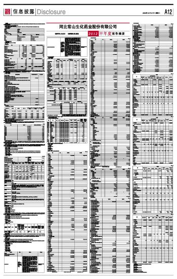 河北常山生化药业股份有限公司2012半年度报告摘要