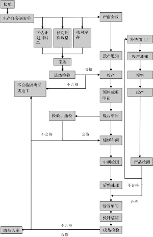 为确保公司产品质量,在剪裁过程中对裁片和缝纫的中间品进行抽检,同时对已完成的缝纫及包装产品也进行抽检,并进行生产全过程的质量控制。