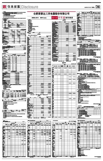 合肥荣事达三洋电器股份有限公司公告(系列) 2012-08-24 来源:证券时报网 作者: