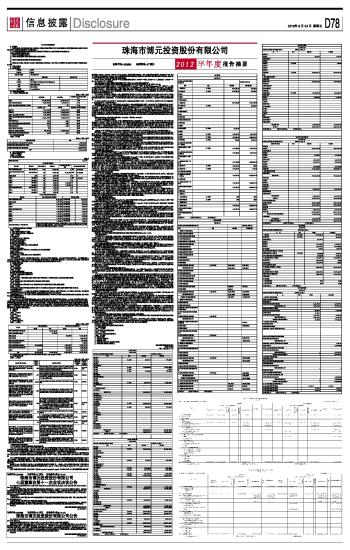珠海市博元投资股份有限公司公告(系列) 2012-08-24 来源:证券时报网 作者: