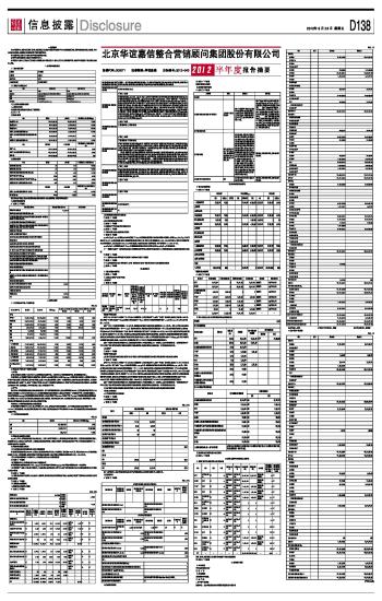 北京华谊嘉信整合营销顾问集团股份有限公司2012半年度报告摘要 2012-08-24 来源:证券时报网 作者: